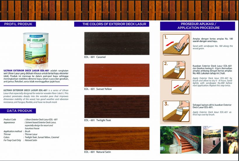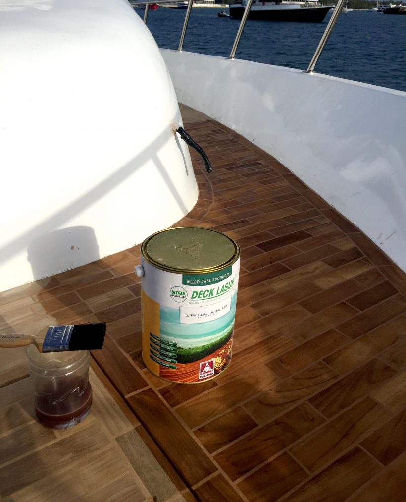 3. Apply Exterior Deck Lasur EDL-601 as final top coat by brush.