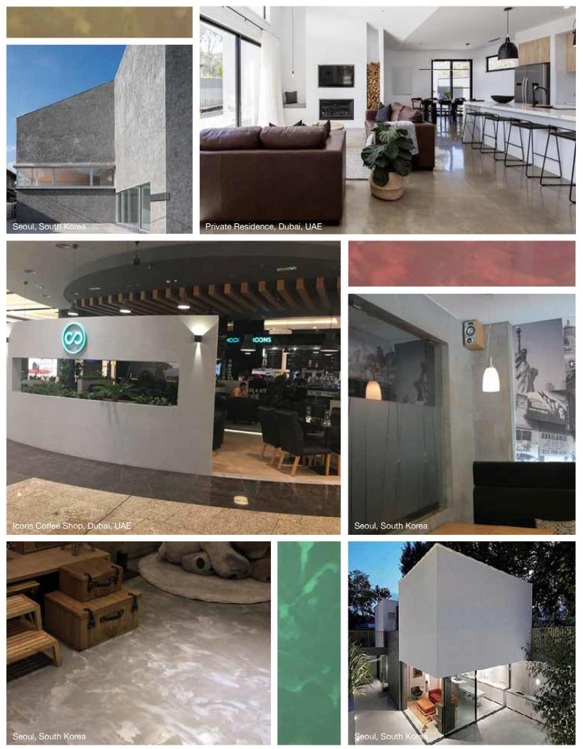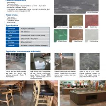 Features and Benefits • Hard wearing • For interior floors • Two component product: cementitious powders + liquid resin • Available in 7 standard colours • Finish system with epoxy clear coating to protect the designer floor    (suitable for areas not subject to UV)